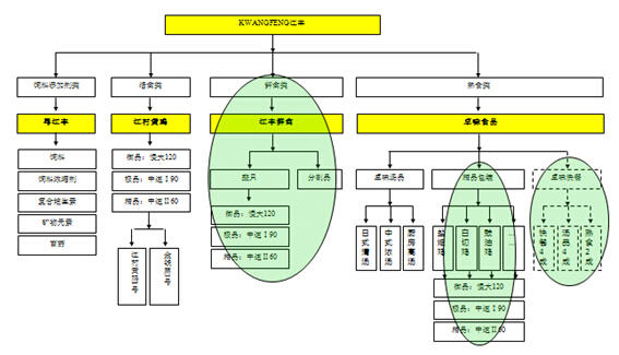 一切品牌都是不能脫離產品而存在,即使品牌概念策劃得再好,產品跟不上也只能白搭。為此,CCBD中擂從江豐眾多的產品中選擇了“生鮮、熟食、快餐”三大板塊來作為江豐打造終端消費者品牌的核心產品,并梳理了現有產品線以及制定了不同產品線的發展規劃,以明確不同產品的使命和銷售渠道,做到高、中、低端搭配,產品線合理,發展有序。