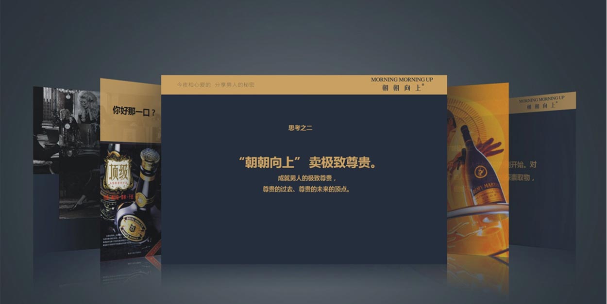朝朝向上是廣東星達集團的一款面向政界、商界、軍界等成功人士的高端養生洋酒。它以洋酒為酒基,加入30多種名貴中草藥釀制而成,糅合洋酒的奢華、漢方的養生雙重特性。2013年,產品正式面向市場銷售。而在眾多酒品品牌當中,如何讓消費者選擇朝朝向上?CCBD中擂通過創新思維為朝朝向上進行品牌定位、包裝,以具有差異化的品牌理念及形象,占領消費者心智。