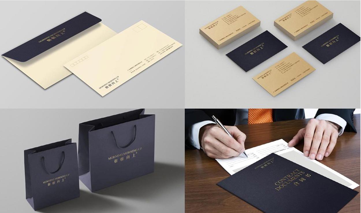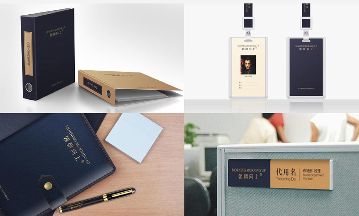 VI的提升,通過對標志字體細節進行調整,讓標志顯得更加精致時尚,富有朝氣。原先的VI設計是通過“朝朝向上”品牌名稱的中英文結合而成,采用電腦內的字體而組成,英文的字體具有時尚尊貴的感覺,而中文字體就顯得平淡無奇,兩者相結合顯得格格不入。經過我們的設計,我們決定對中文字體進行設計。