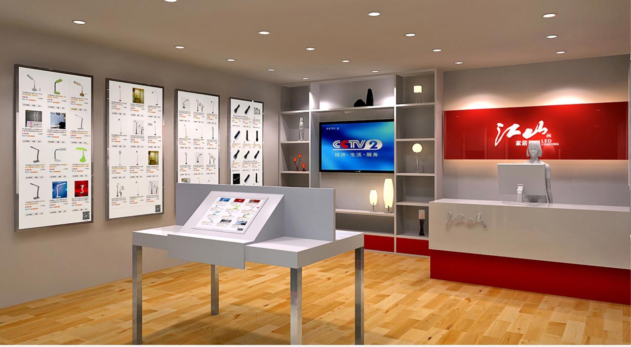 為了達到更好的銷售效果和更低的開店成本,中擂團隊突破傳統店面產品展示與銷售模式,為江山LED照明創造出新的終端銷售模式:江山網上商場+江山E購店。該模式實現了網上虛擬產品展廳與實體產品展示相結合,消費者不僅可以通過網上商場挑選、下單購買,還可以在終端店實現購買和服務,使品牌達到雙向銷售的效果。