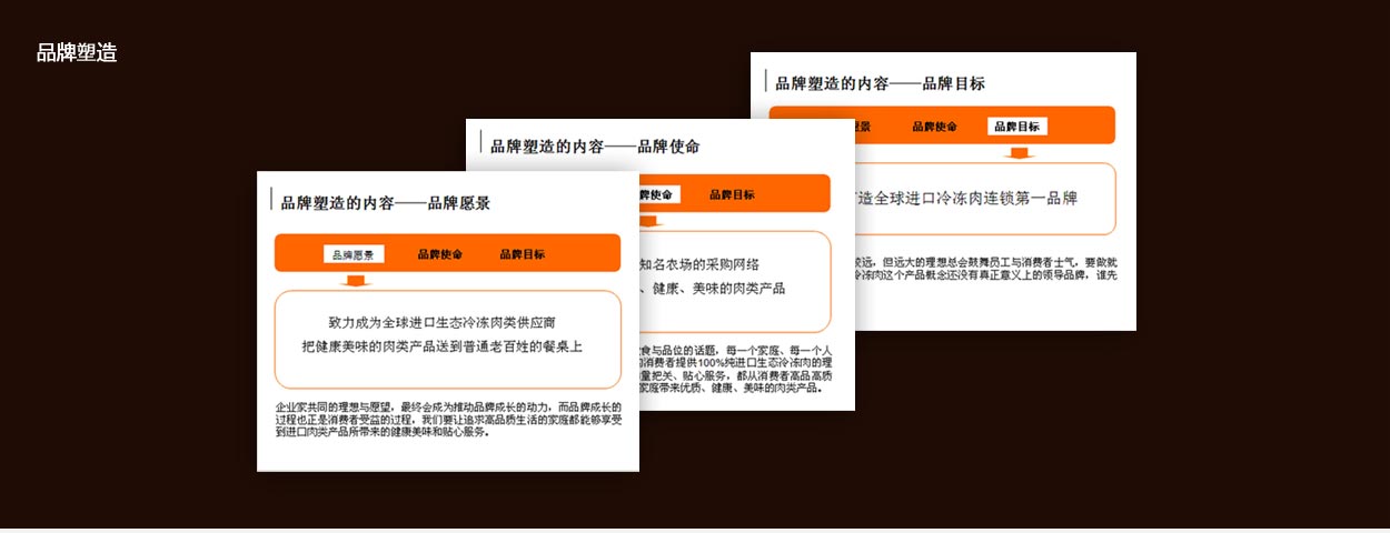 通過上面的分析,中擂基本上確定了富臨美達(dá)即將要走的方向——搶占全球進(jìn)口冷凍肉連鎖第一品牌的位置,以純進(jìn)口、原生態(tài)、口感好為產(chǎn)品概念,以社區(qū)廚房、貼心服務(wù)為品牌概念,以全球進(jìn)口生態(tài)冷凍肉類產(chǎn)品第一品牌為品牌發(fā)展方向。致力成為全球進(jìn)口生態(tài)冷凍肉類供應(yīng)商,把健康美味的肉類產(chǎn)品送到普通老百姓的餐桌上。
