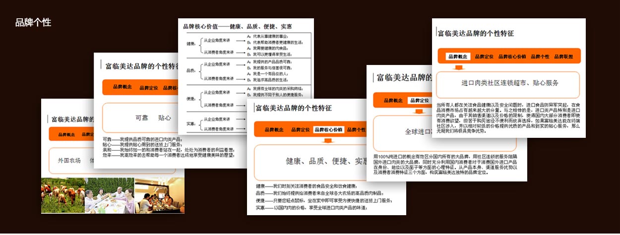 中擂認(rèn)為,富臨美達(dá)用100%純進(jìn)口的概念能有效區(qū)分國內(nèi)所有的大品牌。通過走進(jìn)社區(qū),用社區(qū)連鎖的服務(wù)阻隔國外進(jìn)口肉類的大品牌,同時(shí)充分利用國內(nèi)消費(fèi)者對(duì)于消費(fèi)國外進(jìn)口產(chǎn)品在身份、地位以及面子等方面的心理特征。從產(chǎn)品本身、渠道服務(wù)優(yōu)勢(shì)以及消費(fèi)者消費(fèi)特征三個(gè)方面,構(gòu)筑富臨美達(dá)獨(dú)特的品牌定位。又從品牌調(diào)性、色彩等方面塑造起富臨美達(dá)獨(dú)一無二的品牌形象。