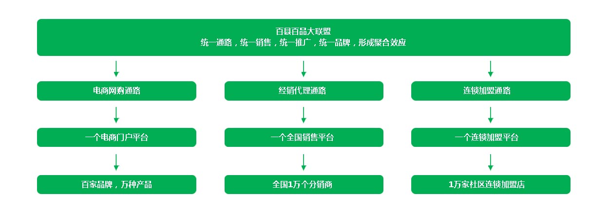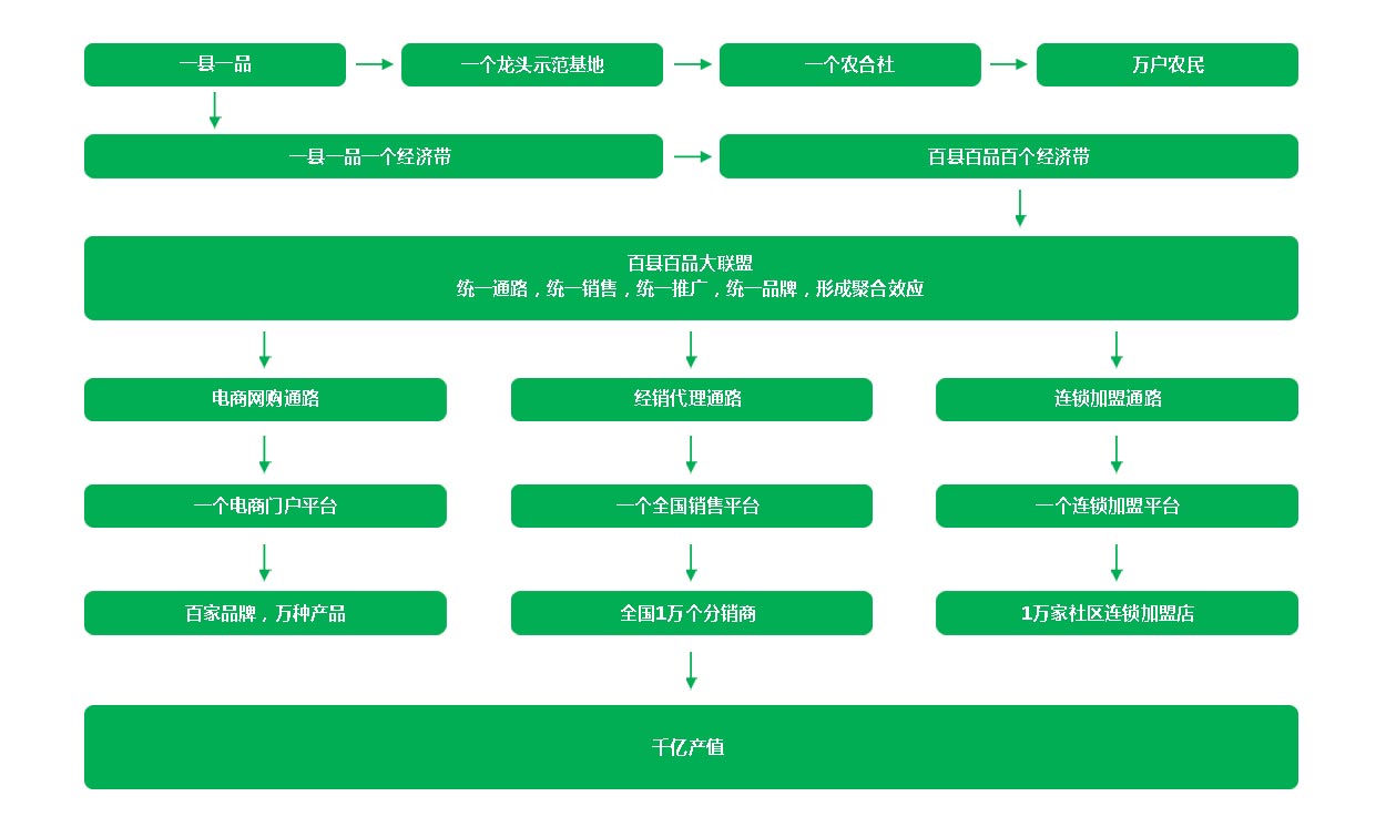 “一縣一帶,百縣百品、一盟三路”工程總體圖示: