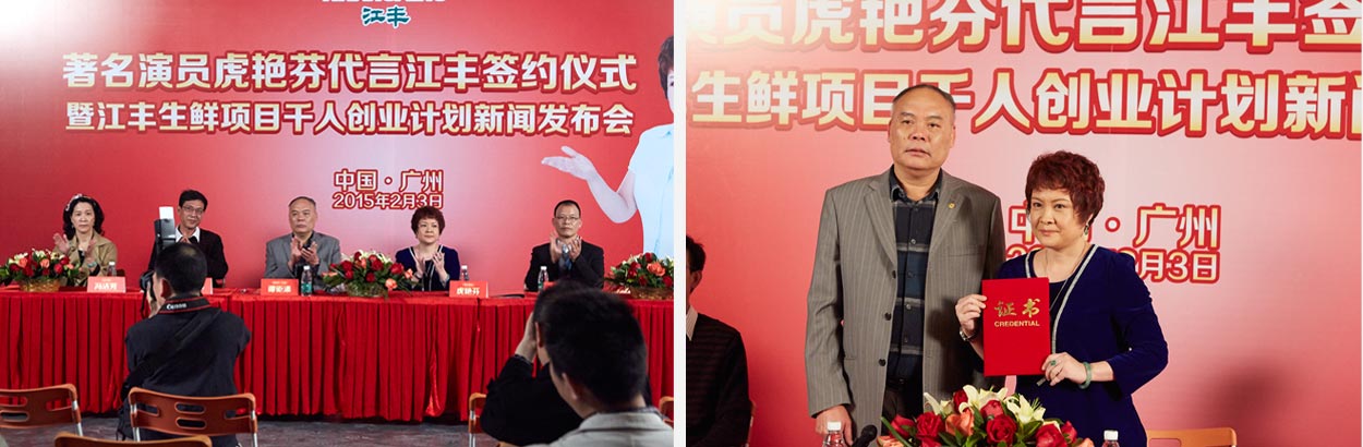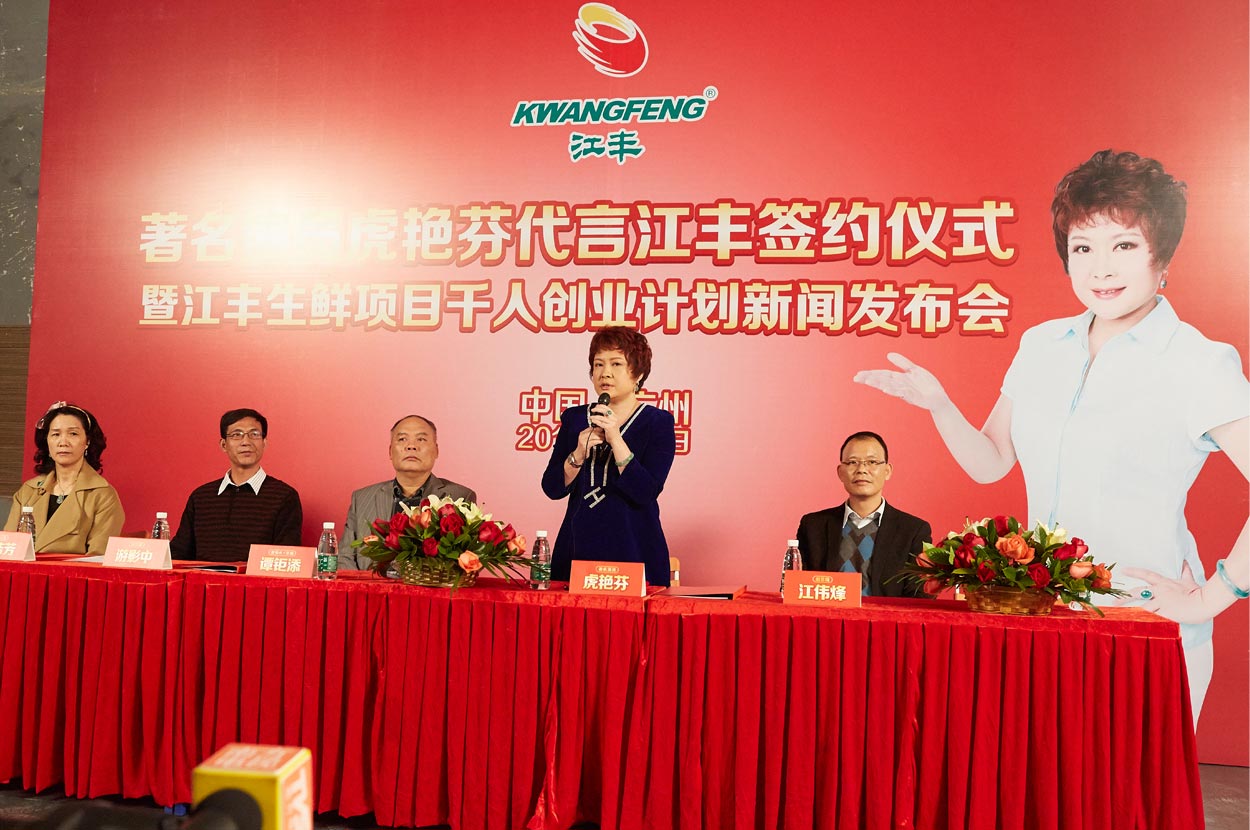通過明星進(jìn)行品牌代言,企業(yè)能借助明星的知名度來迅速提高品牌知名度;還能提升產(chǎn)品在消費(fèi)者心目中的品牌形象;加之能顯示企業(yè)實(shí)力,鼓舞員工及經(jīng)銷商的士氣,并增強(qiáng)企業(yè)凝聚力及經(jīng)銷商的代理信心。在CCBD中擂的協(xié)助下,江豐公司正式簽約著名演員虎艷芬女士作為江豐品牌形象代言人,憑借虎艷芬女士在廣東本土的高知名度和人氣,必將帶來江豐品牌知名度的大幅提升。