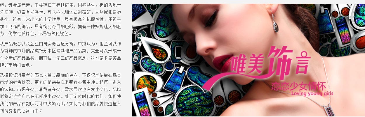 國內(nèi)首飾市場越亦成熟,競爭越發(fā)激烈,沒有靈魂的品牌是無法在這個殘酷的市場中立足的。卡曼芙品牌探索建立的過程,也是尋求消費(fèi)者內(nèi)心需求的過程。直擊消費(fèi)者情感需求,精準(zhǔn)定位女人心智,以鉭金首飾為概念切入網(wǎng)購市場,最終開啟一個彩金首飾的時代。讓平實(shí)的女性耀麗起來也,讓卡曼芙成長起來。