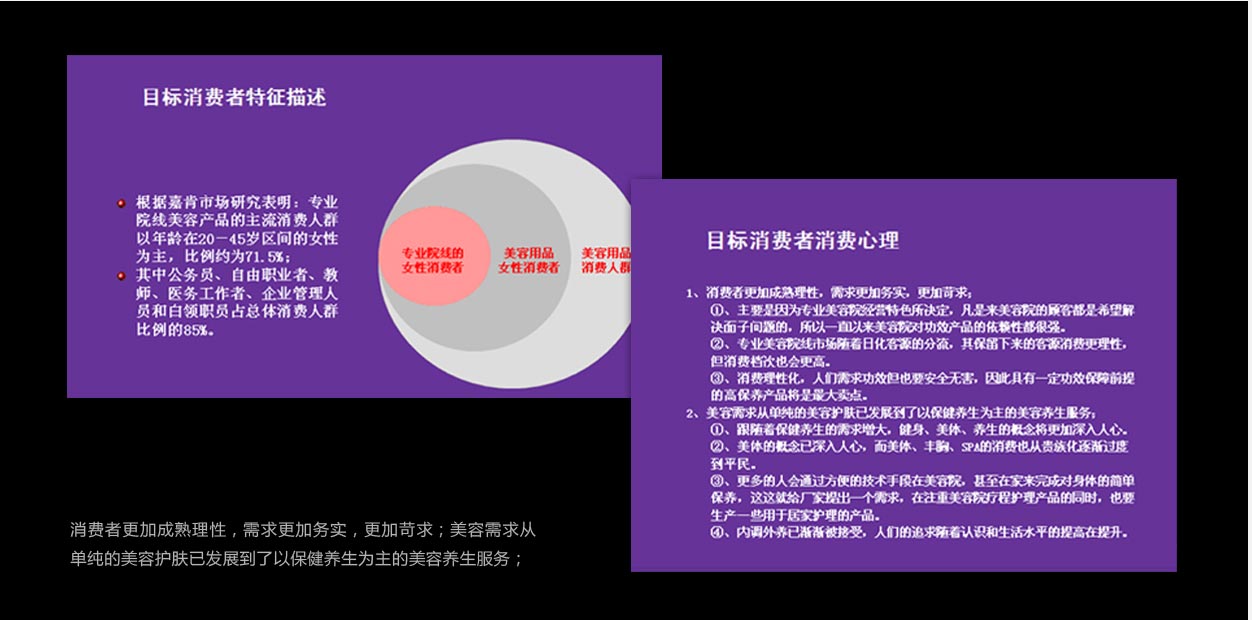 思考二:我們不可能逆著市場走,我們只能順著市場發展大趨勢才可能有大發展,從產品本身出發,我們可以選擇的余地不大我們只能從美容保健、中藥美容、概念美容這幾個方向去挖掘。比如說是一種美容保健的新產品、一種古老的美容配方或者一種全新的中藥美容技術?