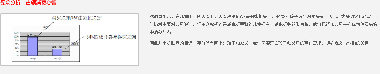 0-3歲嬰兒:這部分人群的消費(fèi)主要由他們的父母或親人完成(購買決策96%由家長決定)。