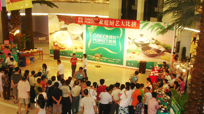 4月24日,由CCBD中擂負責品牌策劃工作的“綠的廚具”,在廣百時代廣場店舉行 “家庭廚藝大比拼”活動,這是針對“綠的”品牌主題展開的一次營銷活動,比賽邀請美食專家進行點評,且所有比賽用具均采用綠的品牌。通過比賽,將綠的品牌的快樂與健康理念傳遞給每個人,讓消費者見證綠的鍋具精品質,使綠的鍋具的品牌深入民心。