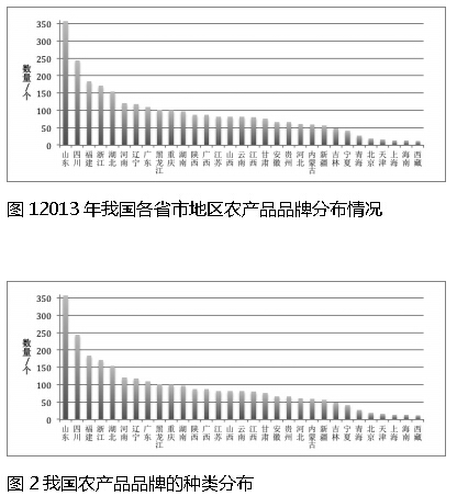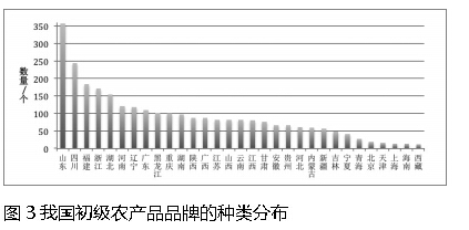 從種類分布看,截至2012年底國家工商總局公布認定的所有農產品地理標志數據可得,我國農產品地理標志所涉及的產品有67%是初級農產品,初加工和精加工農產品則分別為24%和9%。說明真正意義上的農產品,即初級農產品品牌發展的一個重要手段是發展以農產品地理標志為核心的區域品牌。